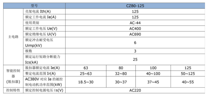 CZB0系列主要用于交流50Hz,额定工作电压交流400V/690V,额定电流0.16A~125A的电动机的控制与保护,适用于频繁操作控制,能够接通、承载、分断正常条件下包括规定的运行过载条件下的电流,且能够接通在规定时间内承载并分断规定的非正常条件下的电流,如短路电流。
